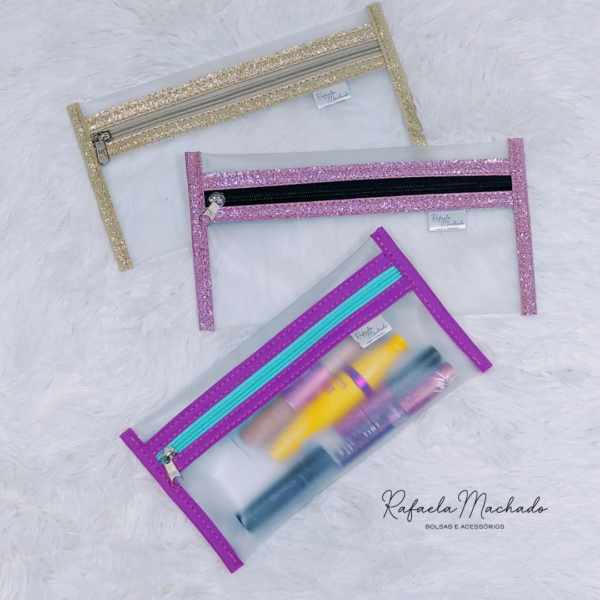 Então nosso estojo multiuso é uma ótima opção para organizar as miudezas da nossa bolsa, tem um tamanho perfeito e o melhor todo transparente.